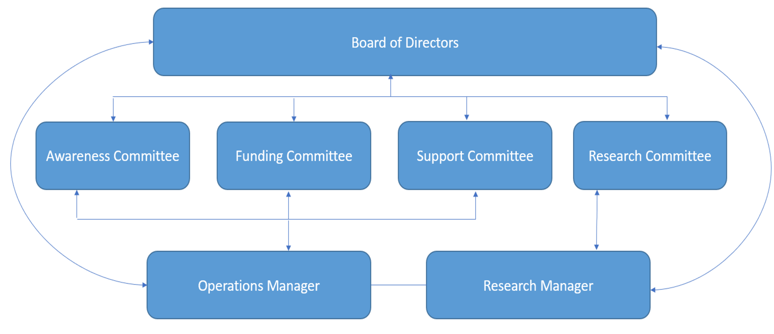 Cystinosis Ireland works to achieve the highest standards in all the work we do.  In 2020/21 we undertook a significant strategic and governance review to see where our organisation was working well and where we had gaps to fill.  As a result of this, and in consultation with our families, supporters, peer organisations and others, we developed a strategic plan and set up dedicated sub committees to achieve our aims.  You can see an outline of the way the organisation works on this graph. We are working towards full compliance with Code by the end of 2024.